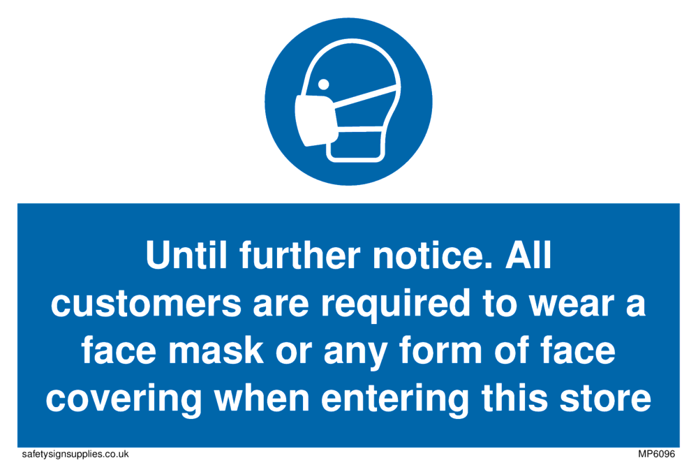 Until further notice. All customers are required to wear a face mask or any form of face covering when entering this store