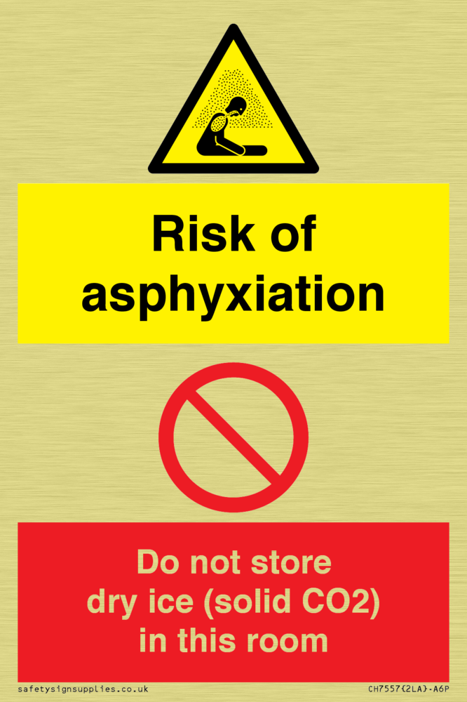 Risk of asphyxiation. Do not store dry ice (solid CO2) in this room Sign