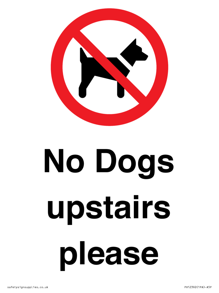 No Dogs upstairs please Sign
