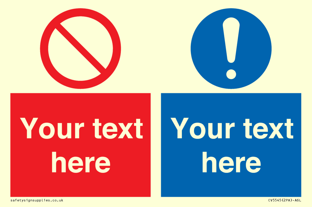 Custom signs contain the text required by the customer. With your your text and a standard safety sign symbol - a bespoke sign can fit any requirement.