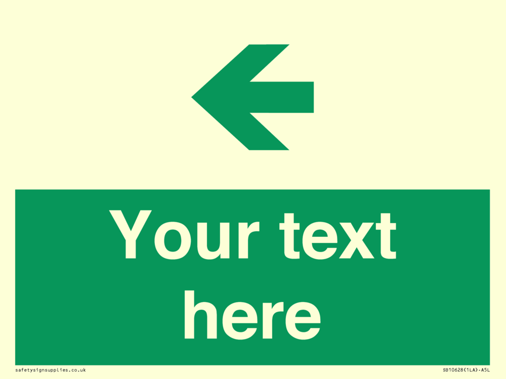 Sign Text: Your text here Dimensions: 200x150mm Material: Vinyl Photoluminescent sticker Orientation: Landscape Text Colour: White Background Colour: Green More...