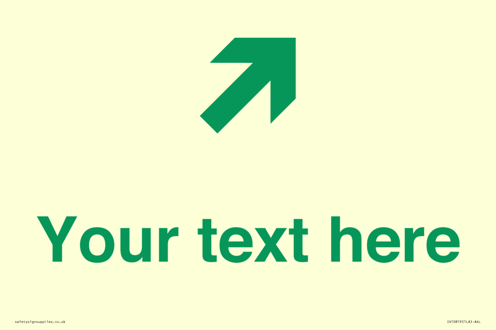 Sign Text: Your text here Dimensions: 300x200mm Material: Vinyl Photoluminescent sticker Orientation: Landscape Text Colour: Green Background Colour: White More...