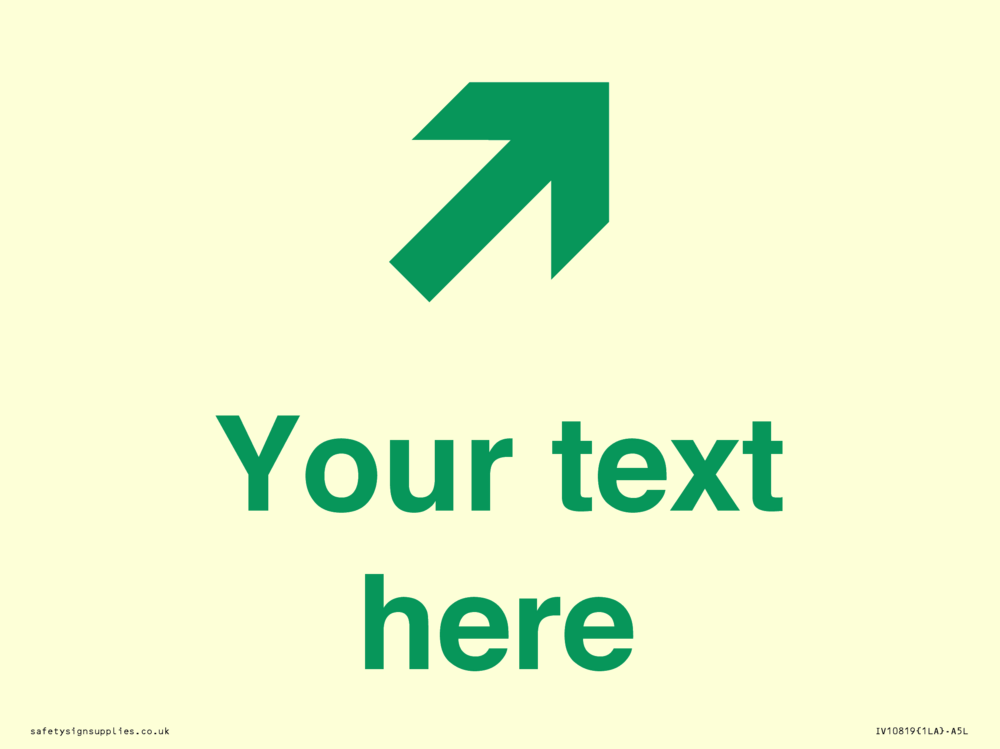 Sign Text: Your text here Dimensions: 200x150mm Material: Vinyl Photoluminescent sticker Orientation: Landscape Text Colour: Green Background Colour: White More...