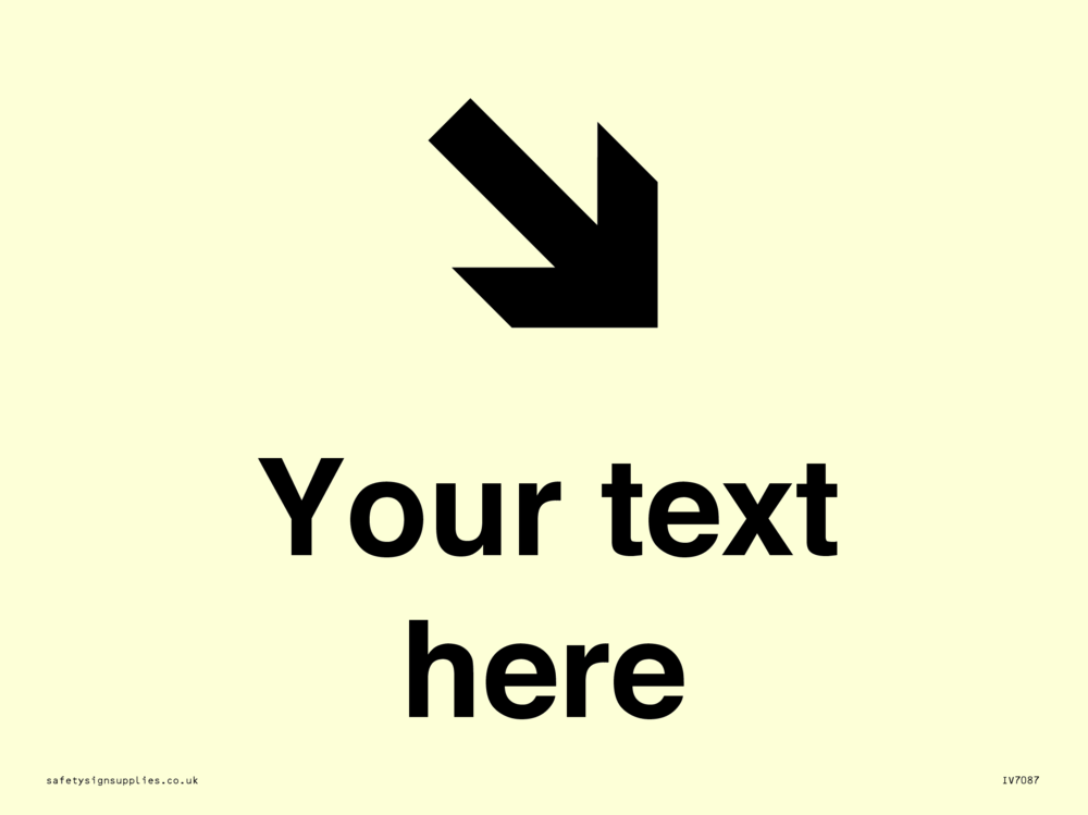 This sign contains an arrow pointing diagonally down and right.