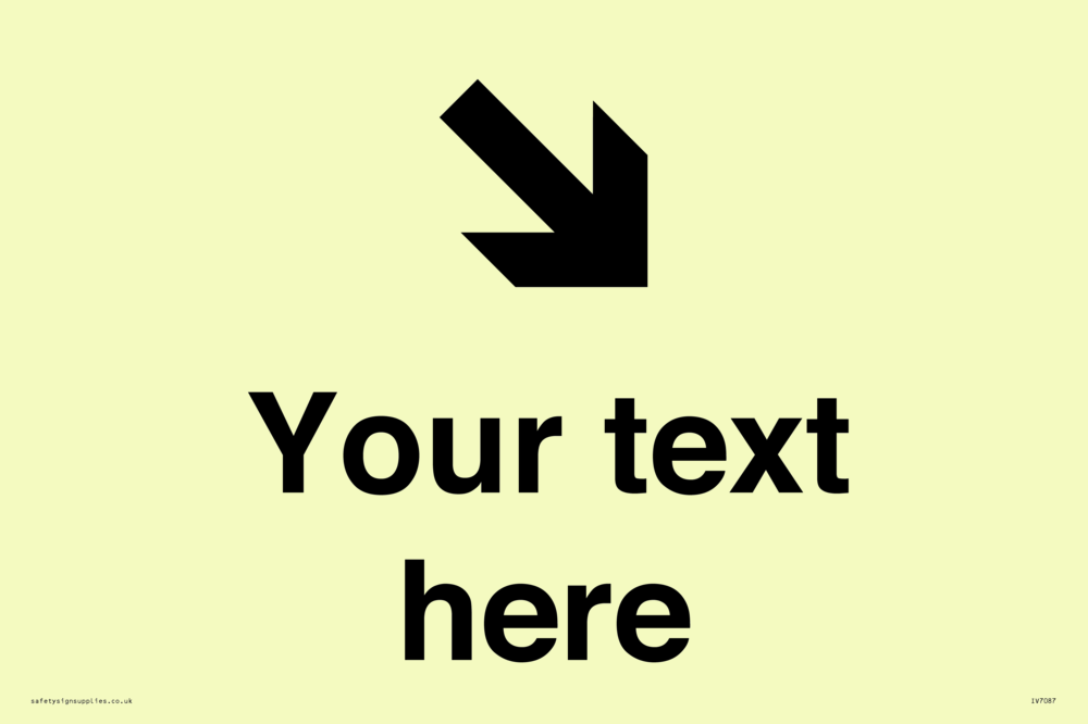 This sign contains an arrow pointing diagonally down and right.