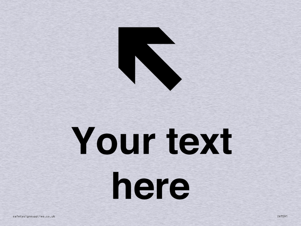 This sign contains an arrow pointing diagonally up and left.