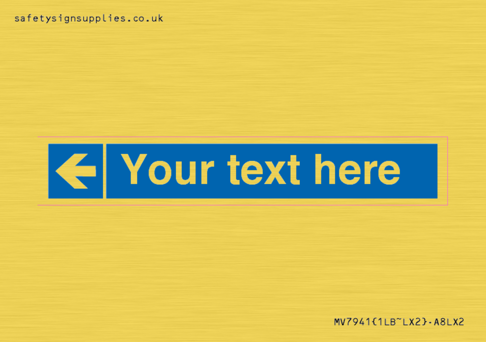 Custom directional sign in blue with white arrow left