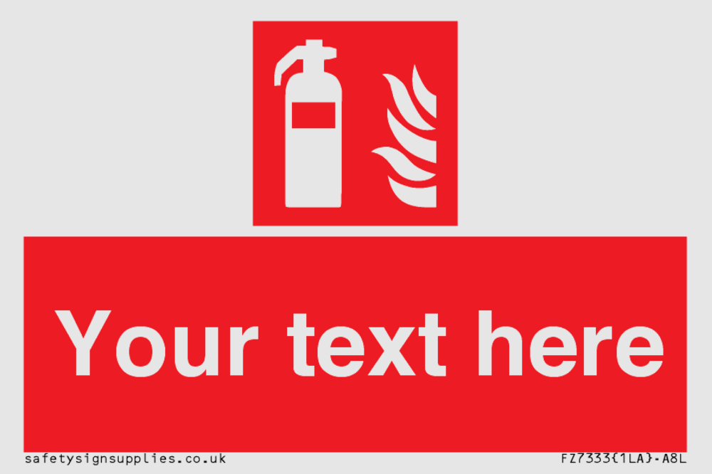 Image content: Fire extinguisher (profile) with label, flame determinant.