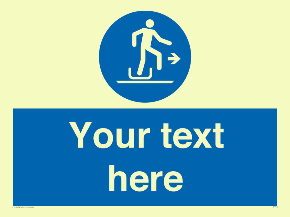 Suitable for mounting on a door. Suitable for mounting on cladding. This product is design to be mounted on the ceiling. Custom signs contain the text required by the customer. With your your text and a standard safety sign symbol - a bespoke sign can fit any requirement.