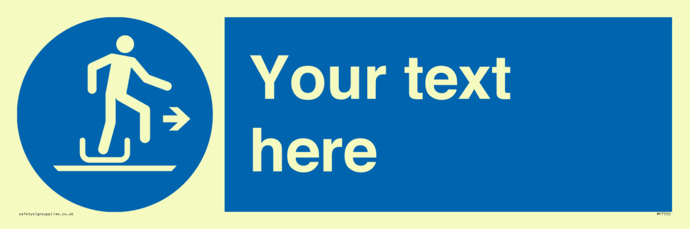 Suitable for mounting on a door. Suitable for mounting on cladding. This product is design to be mounted on the ceiling. Custom signs contain the text required by the customer. With your your text and a standard safety sign symbol - a bespoke sign can fit any requirement.