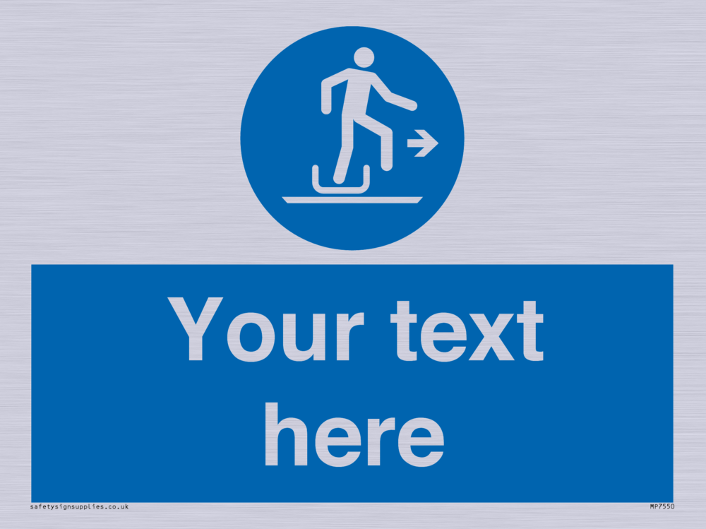Suitable for hanging installation. Suitable for mounting on a flat surface. Suitable for mounting on a door. Custom signs contain the text required by the customer. With your your text and a standard safety sign symbol - a bespoke sign can fit any requirement. Signs in this range are from our standard range.
