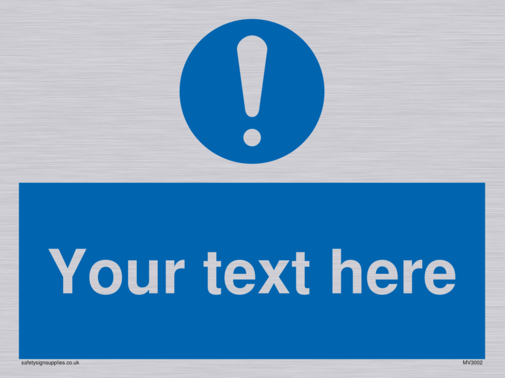 Custom mandatory sign with general mandatory symbol - white exclamation in blue circle