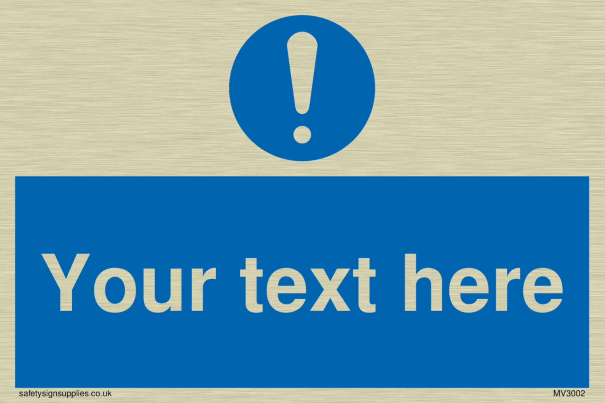 Custom mandatory sign with general mandatory symbol - white exclamation in blue circle