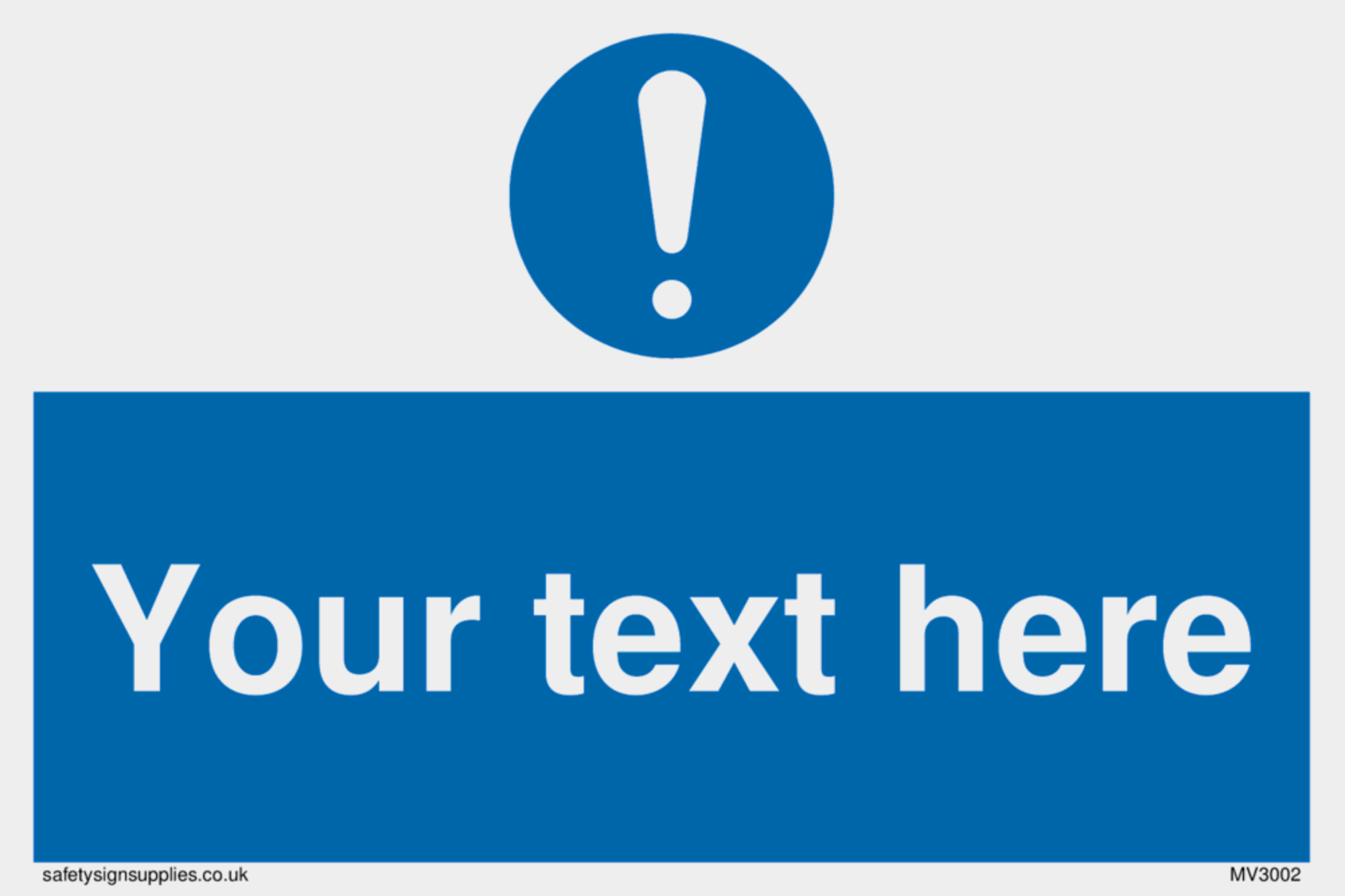 Custom mandatory sign with general mandatory symbol - white exclamation in blue circle