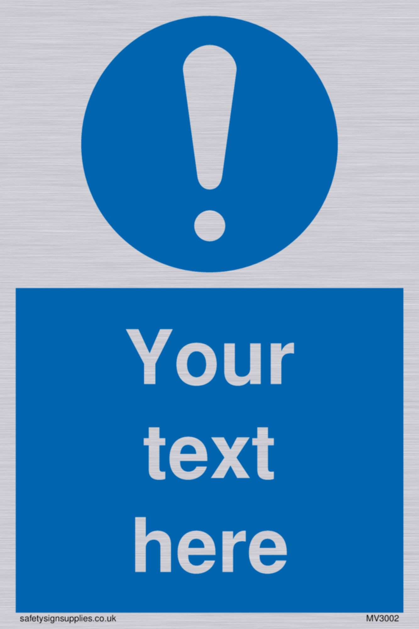 Custom mandatory sign with general mandatory symbol - white exclamation in blue circle