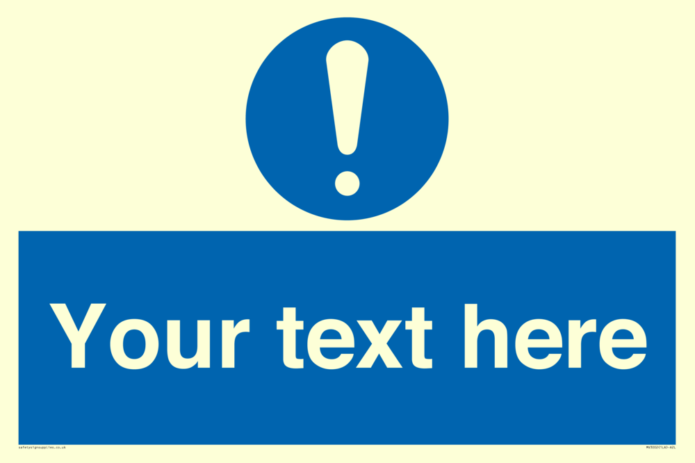 Custom mandatory sign with general mandatory symbol - white exclamation in blue circle