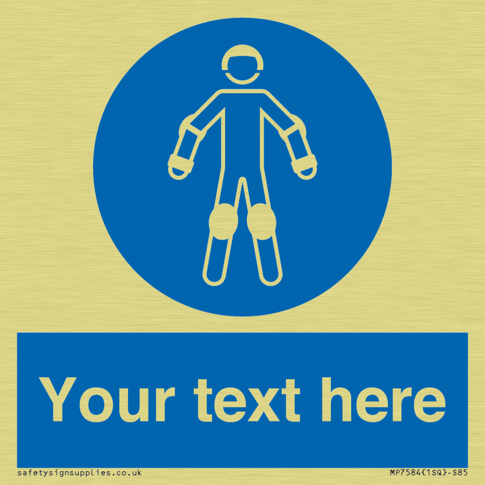 Image content: Human figure (outlined) wearing head, wrist, palm, knee and elbow protectors.