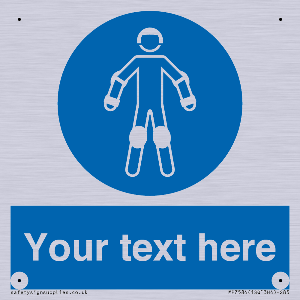 Image content: Human figure (outlined) wearing head, wrist, palm, knee and elbow protectors.