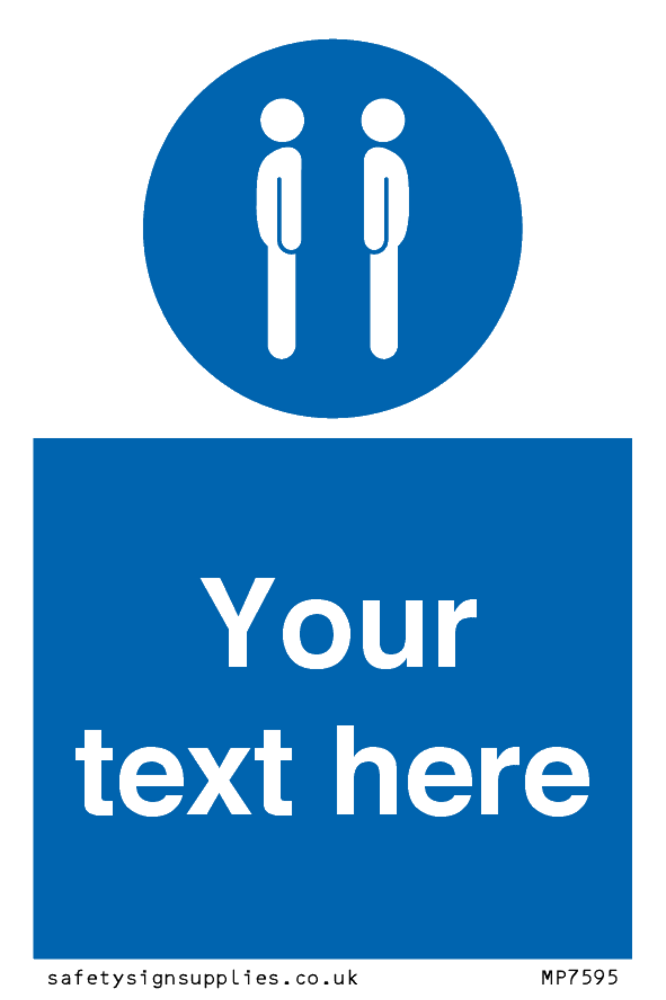Suitable for mounting on a flat surface. Suitable for mounting on a door. Suitable for mounting on cladding. This product is design to be mounted on the ceiling. Custom signs contain the text required by the customer. With your your text and a standard safety sign symbol - a bespoke sign can fit any requirement.