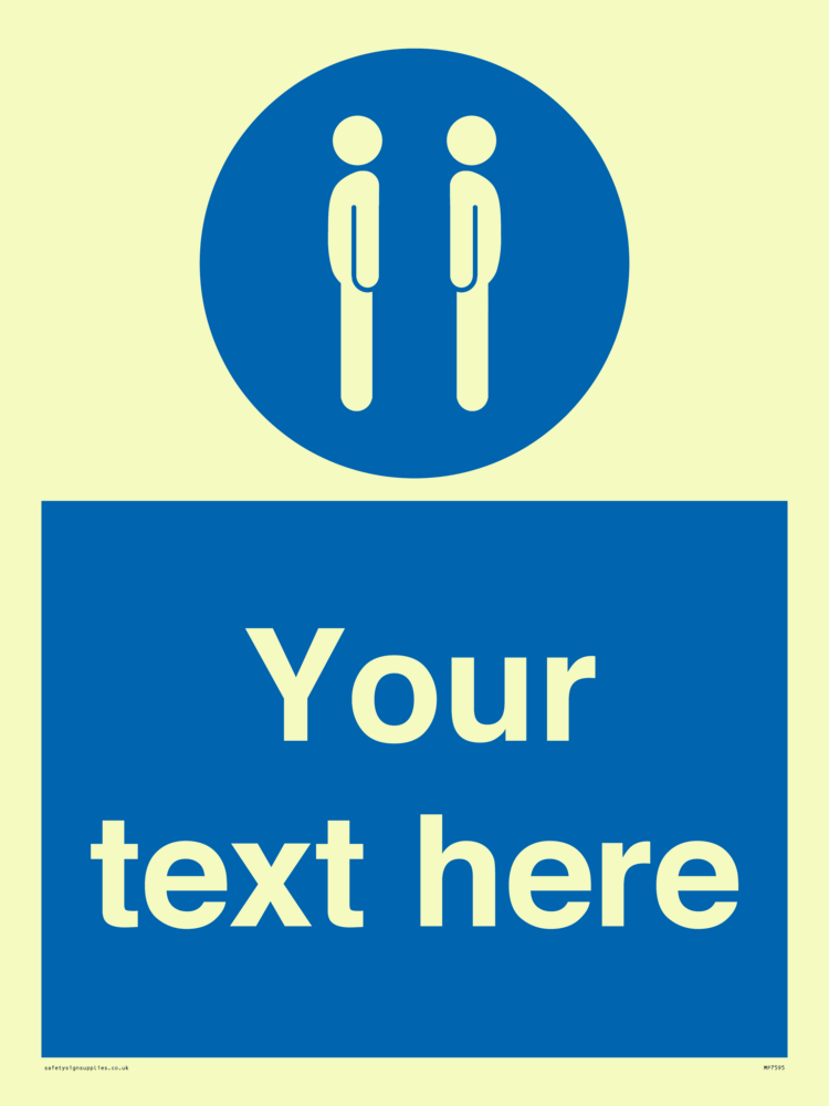 Suitable for mounting on a door. Suitable for mounting on cladding. This product is design to be mounted on the ceiling. Custom signs contain the text required by the customer. With your your text and a standard safety sign symbol - a bespoke sign can fit any requirement.