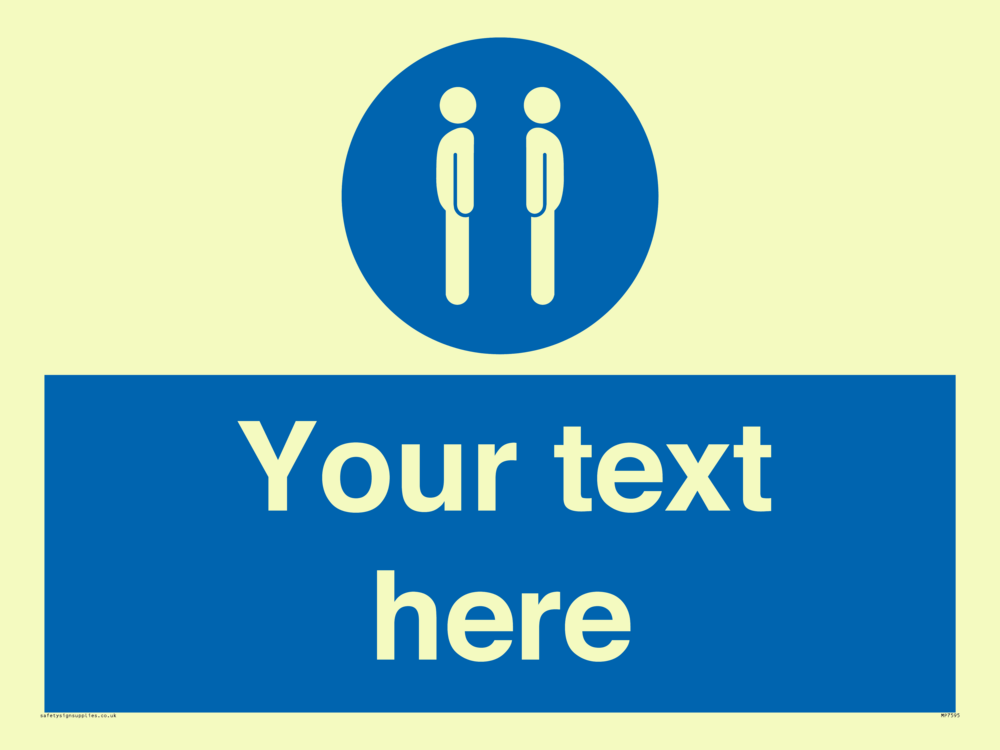 Suitable for mounting on a door. Suitable for mounting on cladding. This product is design to be mounted on the ceiling. Custom signs contain the text required by the customer. With your your text and a standard safety sign symbol - a bespoke sign can fit any requirement.