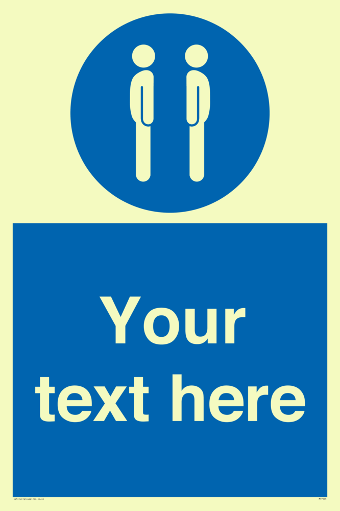 Suitable for mounting on a door. Suitable for mounting on cladding. This product is design to be mounted on the ceiling. Custom signs contain the text required by the customer. With your your text and a standard safety sign symbol - a bespoke sign can fit any requirement.