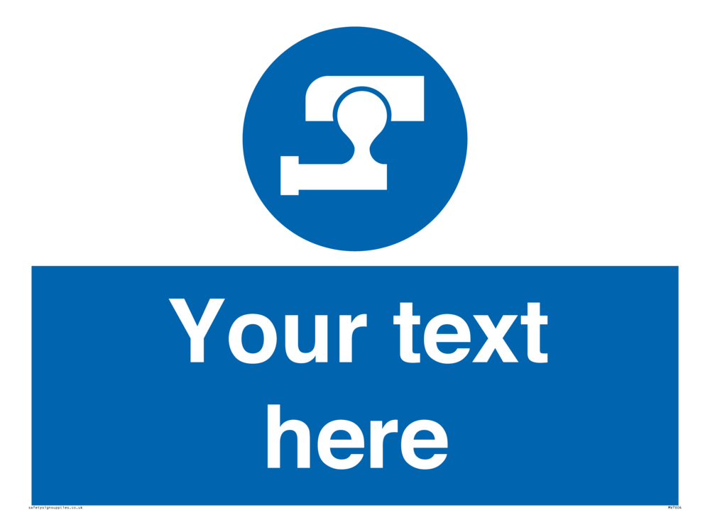 Suitable for mounting on a flat surface. Suitable for mounting on a door. Suitable for mounting on cladding. This product is design to be mounted on the ceiling. Custom signs contain the text required by the customer. With your your text and a standard safety sign symbol - a bespoke sign can fit any requirement.