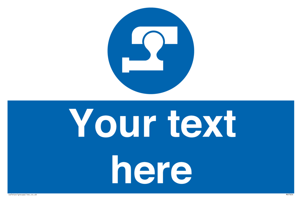 Suitable for mounting on a flat surface. Suitable for mounting on a door. Suitable for mounting on cladding. This product is design to be mounted on the ceiling. Custom signs contain the text required by the customer. With your your text and a standard safety sign symbol - a bespoke sign can fit any requirement.