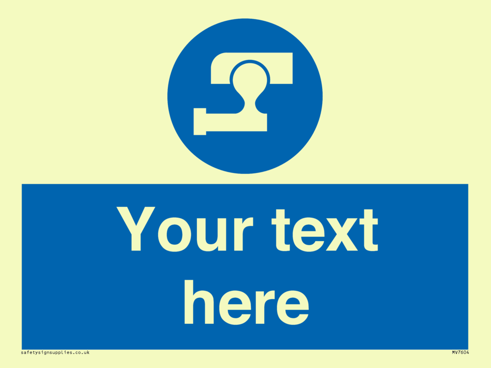 Suitable for mounting on a door. Suitable for mounting on cladding. This product is design to be mounted on the ceiling. Custom signs contain the text required by the customer. With your your text and a standard safety sign symbol - a bespoke sign can fit any requirement. Signs in this range are from our standard range.