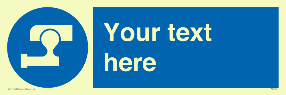 Suitable for mounting on a door. Suitable for mounting on cladding. This product is design to be mounted on the ceiling. Custom signs contain the text required by the customer. With your your text and a standard safety sign symbol - a bespoke sign can fit any requirement. Signs in this range are from our standard range.