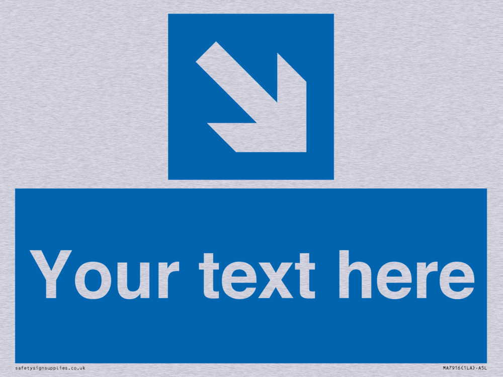 This sign contains an arrow pointing diagonally down and right.