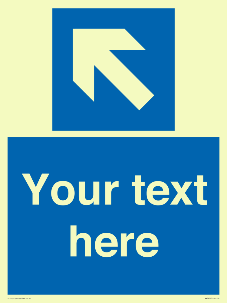 Suitable for mounting on a flat surface. Suitable for mounting on a door. Suitable for mounting on cladding. This product is design to be mounted on the ceiling. Custom signs contain the text required by the customer. With your your text and a standard safety sign symbol - a bespoke sign can fit any requirement.
