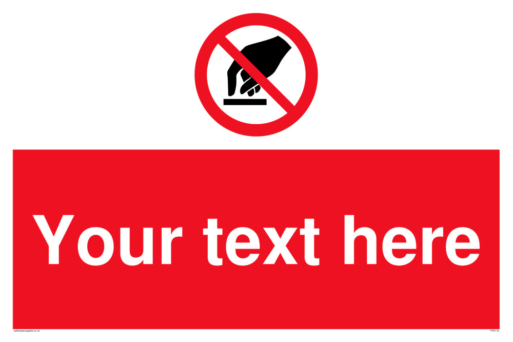 This sign contains a do not touch symbol - hand in black with red prohibition circle crossed through with diagonal line.