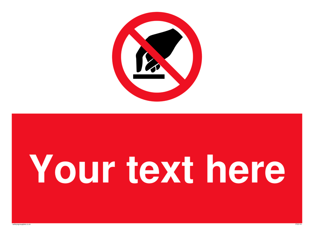 This sign contains a do not touch symbol - hand in black with red prohibition circle crossed through with diagonal line.