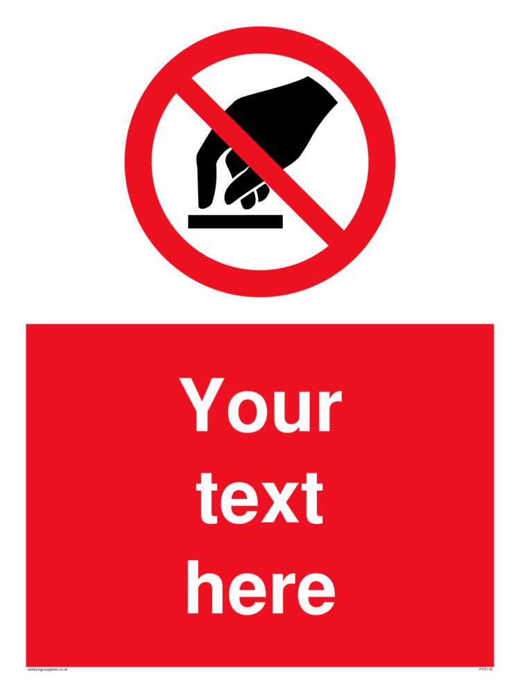 This sign contains a do not touch symbol - hand in black with red prohibition circle crossed through with diagonal line.