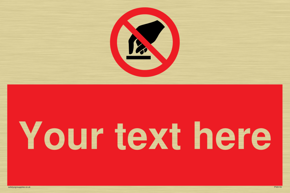 This sign contains a do not touch symbol - hand in black with red prohibition circle crossed through with diagonal line.