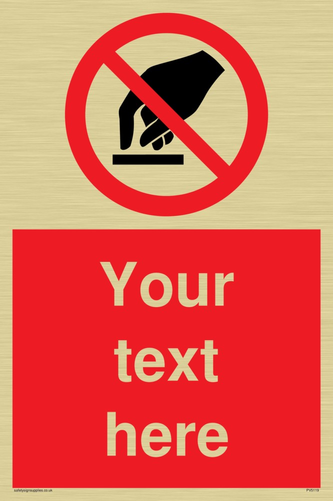 This sign contains a do not touch symbol - hand in black with red prohibition circle crossed through with diagonal line.