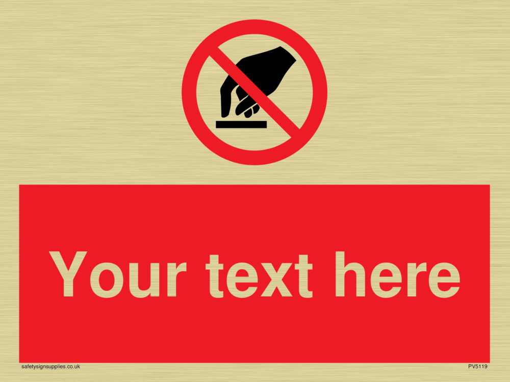 This sign contains a do not touch symbol - hand in black with red prohibition circle crossed through with diagonal line.