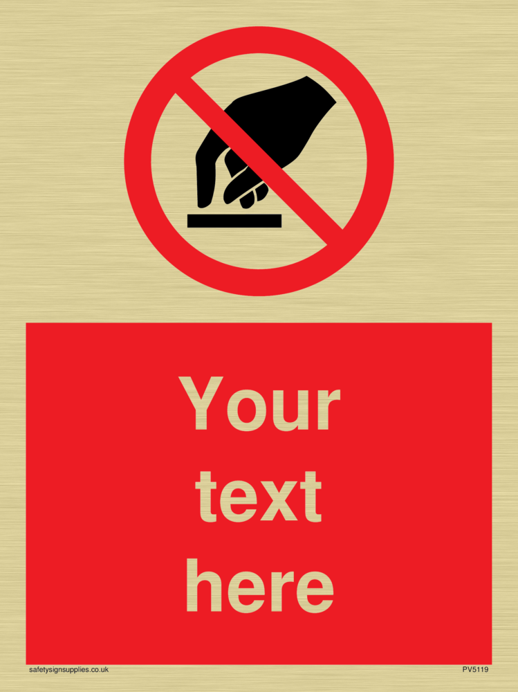 This sign contains a do not touch symbol - hand in black with red prohibition circle crossed through with diagonal line.