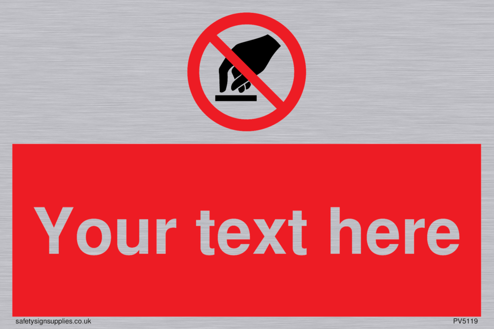 This sign contains a do not touch symbol - hand in black with red prohibition circle crossed through with diagonal line.
