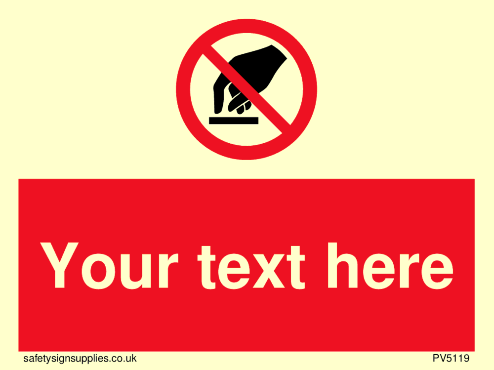 This sign contains a do not touch symbol - hand in black with red prohibition circle crossed through with diagonal line.