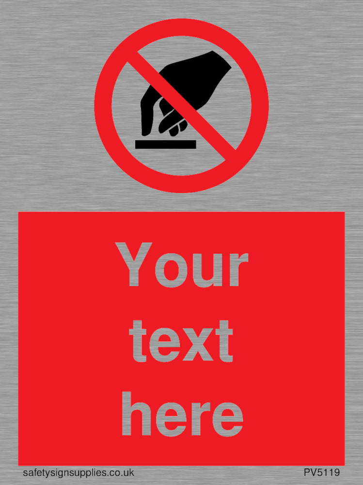 This sign contains a do not touch symbol - hand in black with red prohibition circle crossed through with diagonal line.