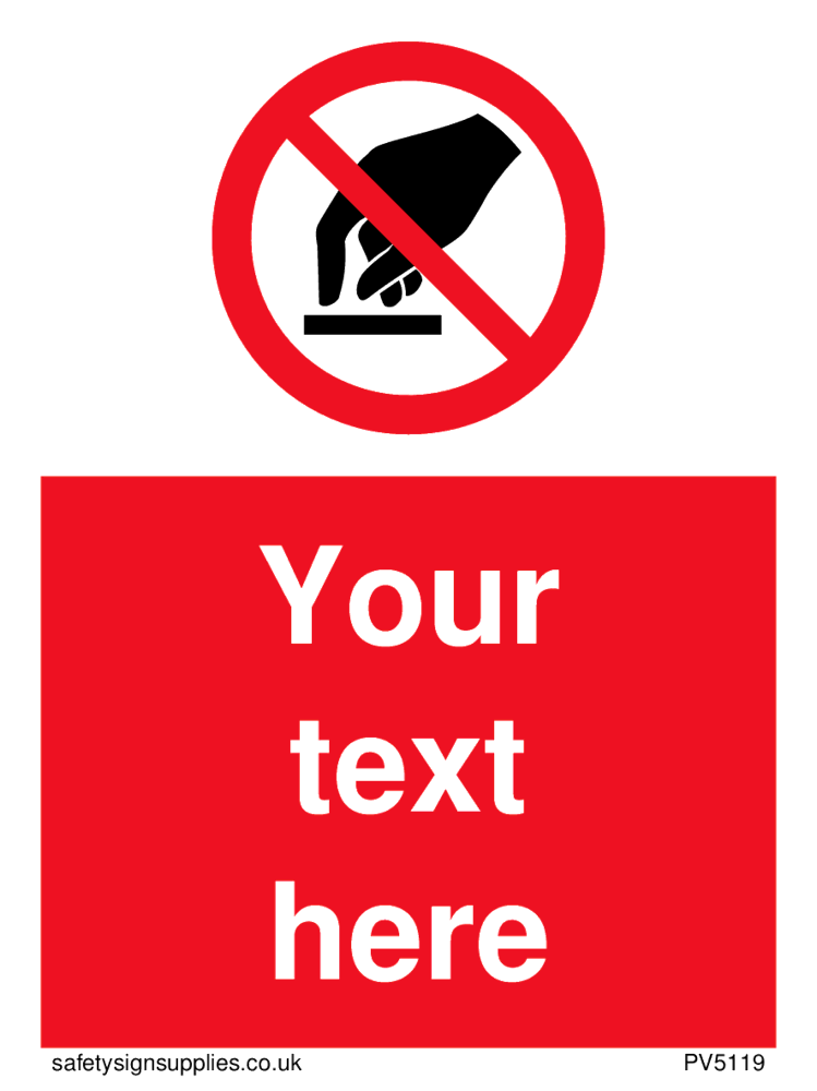 This sign contains a do not touch symbol - hand in black with red prohibition circle crossed through with diagonal line.
