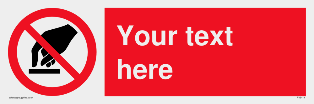 This sign contains a do not touch symbol - hand in black with red prohibition circle crossed through with diagonal line.