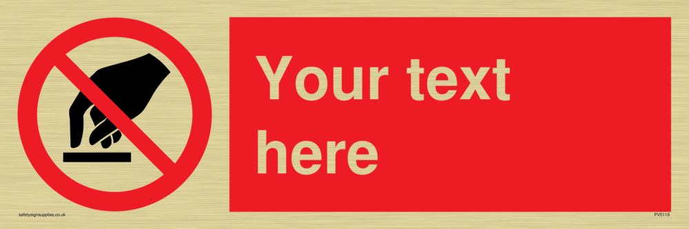 This sign contains a do not touch symbol - hand in black with red prohibition circle crossed through with diagonal line.