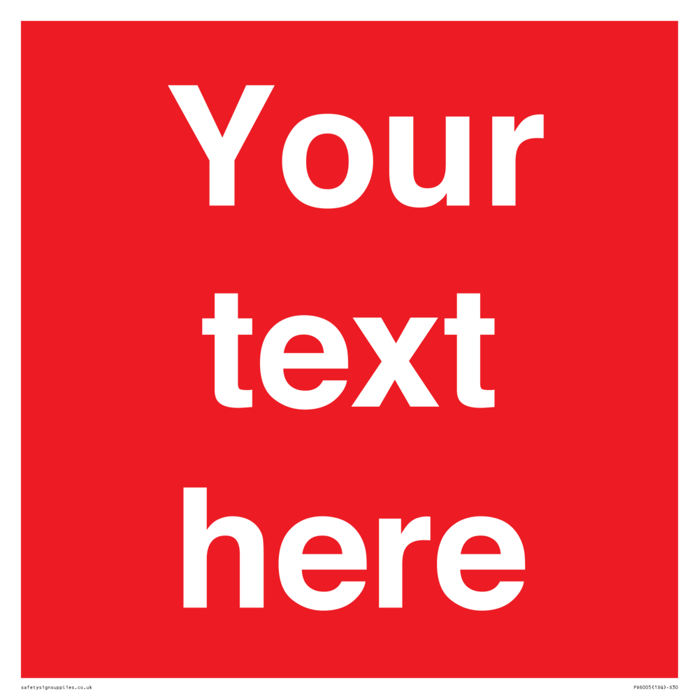 Sign Text: Your text here Product Type: Prohibition Safety Signs Dimensions: 300x300mm Material: Aluminum matte laminated with 2 channel Orientation: Square Text Colour: White More...