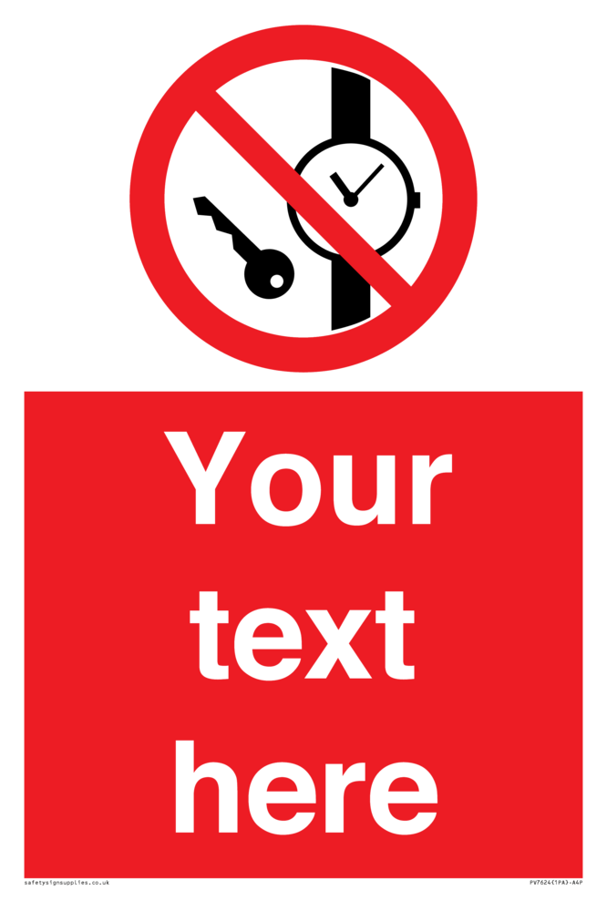 Custom signs contain the text required by the customer. With your your text and a standard safety sign symbol - a bespoke sign can fit any requirement. Signs in this range are from our standard range.