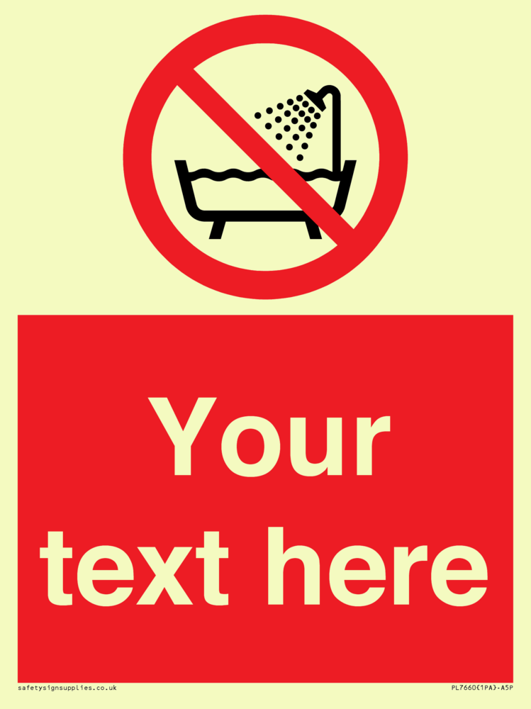 Suitable for mounting on a door. Suitable for mounting on cladding. This product is design to be mounted on the ceiling. Custom signs contain the text required by the customer. With your your text and a standard safety sign symbol - a bespoke sign can fit any requirement. Signs in this range are from our standard range.