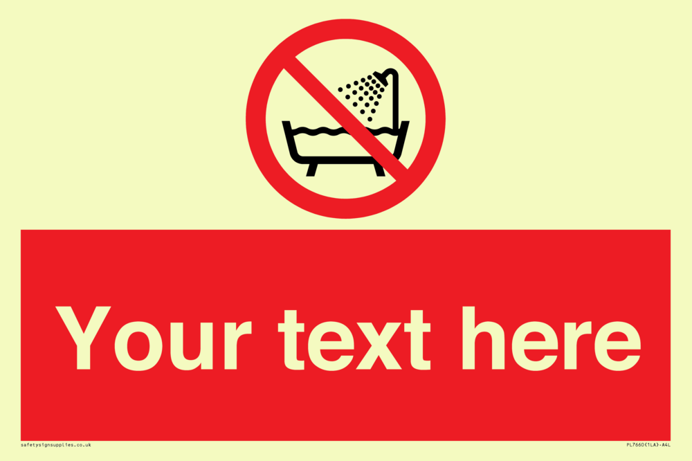 Suitable for mounting on a door. Suitable for mounting on cladding. This product is design to be mounted on the ceiling. Custom signs contain the text required by the customer. With your your text and a standard safety sign symbol - a bespoke sign can fit any requirement. Signs in this range are from our standard range.
