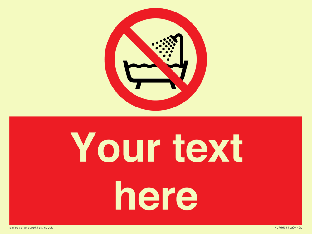 Suitable for mounting on a door. Suitable for mounting on cladding. This product is design to be mounted on the ceiling. Custom signs contain the text required by the customer. With your your text and a standard safety sign symbol - a bespoke sign can fit any requirement. Signs in this range are from our standard range.